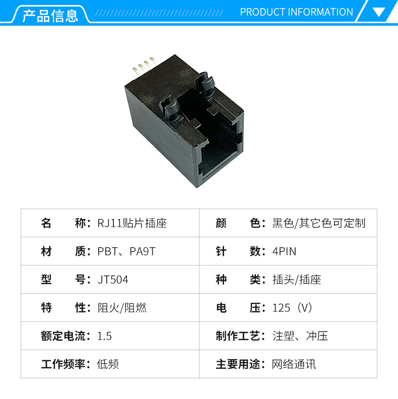本公司提供優良的RJ11、RJ12電話插接件、RJ45網絡插接件,耐環境RJ45防水連接器,防水電連接器及其它精密連接器,產品應用于網絡通訊(電腦主板,網絡交換機,路由器,電信設備)、惡劣環境下數據傳輸與控制及電源信號傳輸與控制(戶外LED顯示屏、機器控制、工業程序控制等)