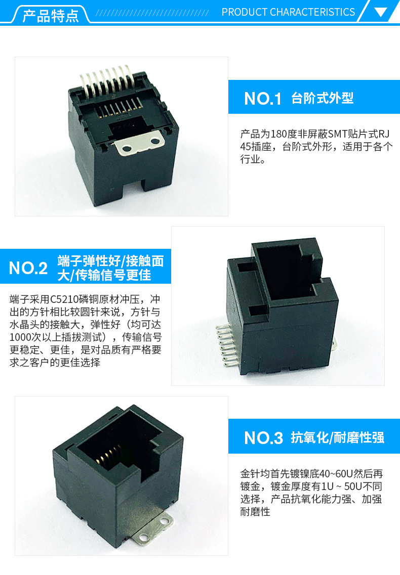 本公司提供優良的RJ11、RJ12電話插接件、RJ45網絡插接件,耐環境RJ45防水連接器,防水電連接器及其它精密連接器,產品應用于網絡通訊(電腦主板,網絡交換機,路由器,電信設備)、惡劣環境下數據傳輸與控制及電源信號傳輸與控制(戶外LED顯示屏、機器控制、工業程序控制等)
